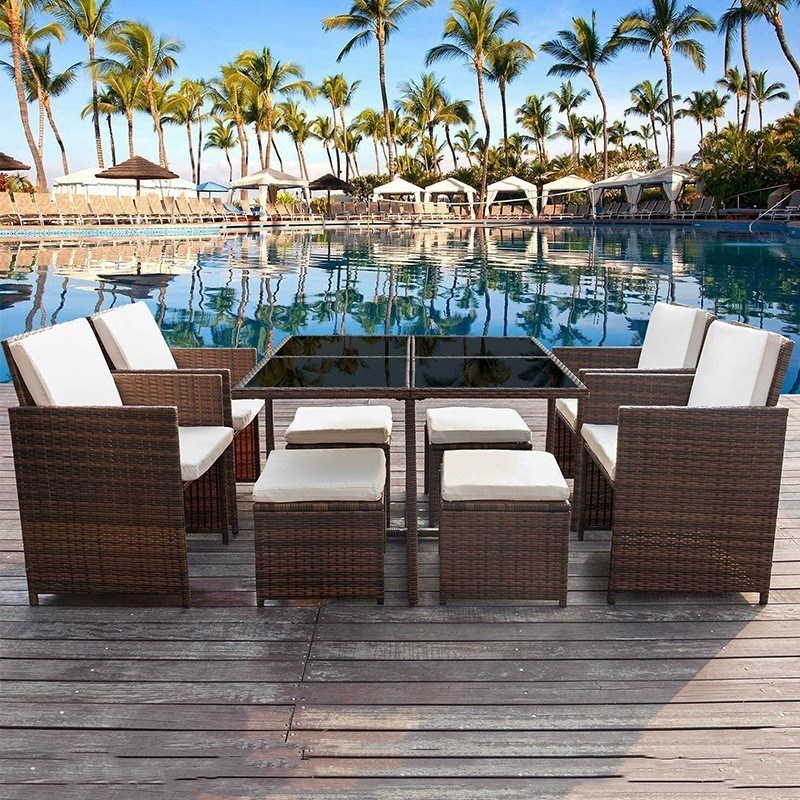 | PverplaatsbaarS- Ik heb het gedaan. | 4x stoel ((60x58x87cm) 4x stoelkussen ((50x48x5cm) 1x tabel (dia:110x44cm) 1x gehard glas ((DIA:110*0,5 cm) |